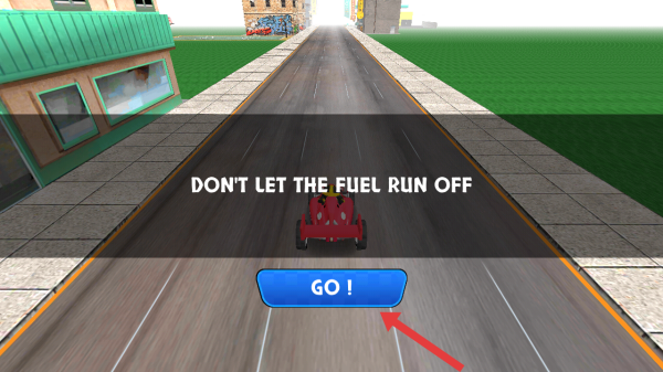 1、进入游戏后,点击界面上标有蓝色“GO”字样的按钮,即可启动本关卡。同时,请务必牢记规则:“DON’T LET THE FUEL RUN OFF” 。