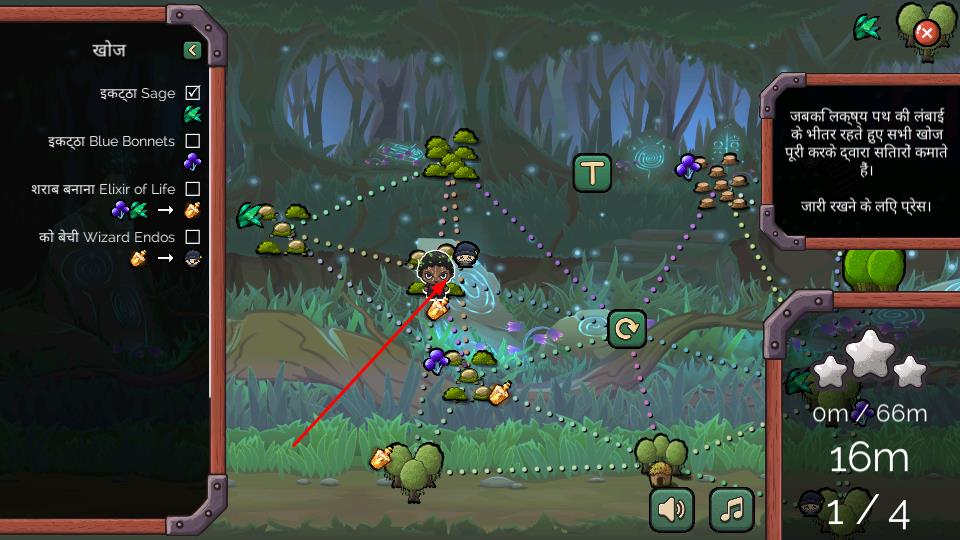 2、操控角色在森林地图移动,途经植物、道具时自动收集,完成左侧列表对应项目,留意地图障碍与新区域。