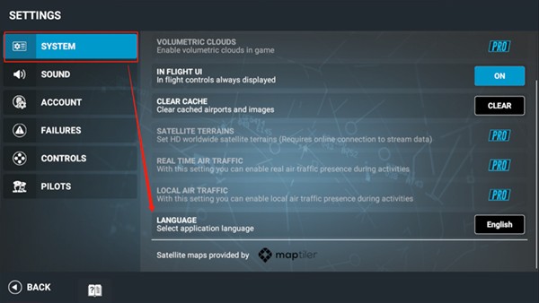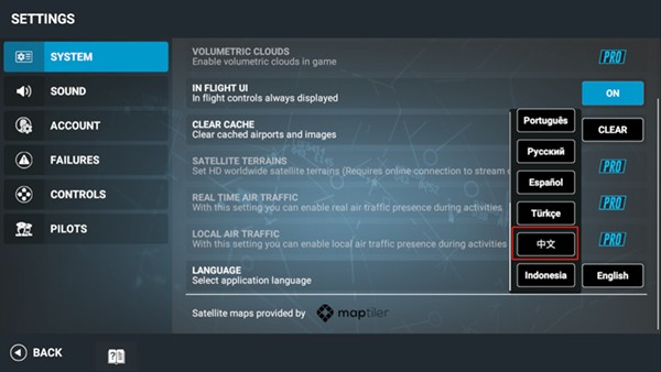 1、首先进入rfs模拟飞行pro安卓版游戏中,点击左下角的【设置】图标