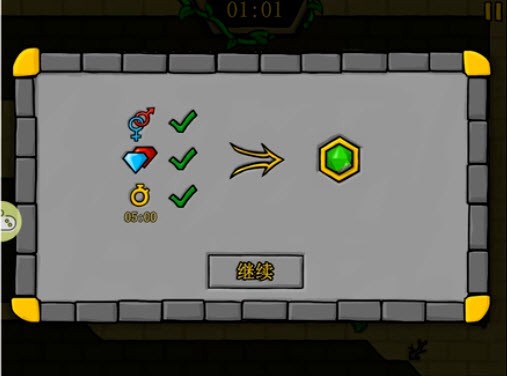 4、注意水女孩和火男孩只能碰到自己属性的物体,如水女孩是水属性,如果碰到了火,游戏就会失败。