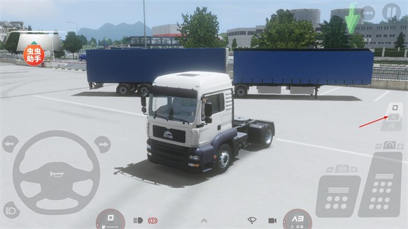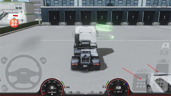 10、想要开始拉货就需要先将卡车开到货物所在地点,地点会用绿色箭头标识,靠近后就能连接货物开始任务。