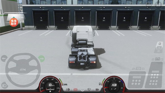 5、屏幕左侧的大圆盘是卡车的方向盘,可以操控卡车转向,方向盘中间的喇叭按钮是鸣笛。