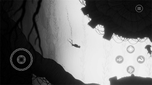 3、正式开始后左边控制角色的移动,右边触手图案的时占有技能,鱼图案的是使用对应海洋生物的能力,头盔图案的是探照灯,脚蹼图案是加速。