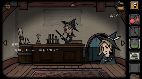 第二天醒来,安娜会提及莉莉不见的事情。与她对话完毕后,点击魔法书,反复翻页可获得火柴。此外,左侧木桶上藏有太阳魔法卷轴,记得拾取。