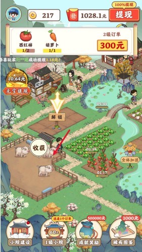 完成订单任务后可获得丰厚奖励,包括金币、道具等,帮助你更快扩展农场规模,提升经营效率。