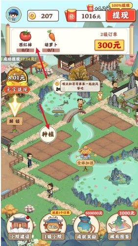 1. 先进入游戏,在游戏中查看订单,接着进行种植操作,点击空着的土地即可开始。