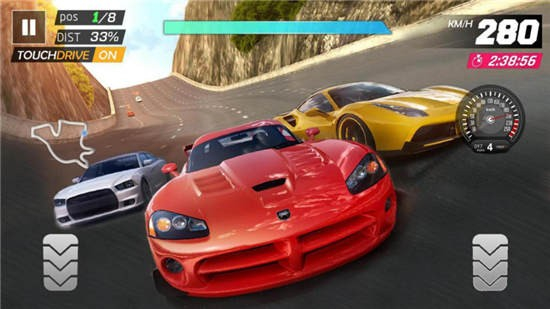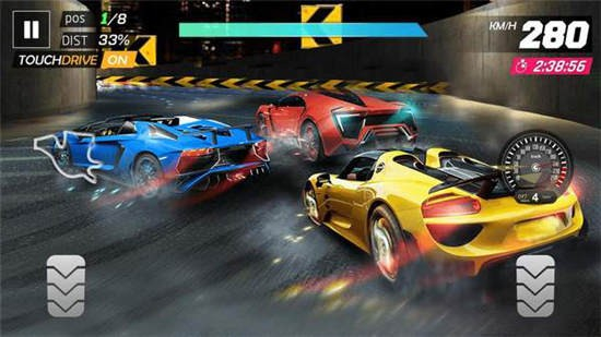 在游戏中,玩家需要在正确的时间提速来达成“完美换挡”,最先冲过终点线来打败对手,从而赢得这场比赛的胜利。跟随故事主线的玩家会体验到不同难度的关卡。同时通过不同的主线关卡,玩家会获得对应的赛车奖励。不仅如此还可以在一大批有趣而又独特的场景中赛车,从废弃管道到黑暗的工业地区再到城市街道。玩家不断深入游戏进程,将逐渐面临越来越有挑战性的对手和超刺激的赛车场景。也可以通过拉所加的游戏好友进行比赛来体验赛道,或者与好友进行比拼,谁才是速度之王。