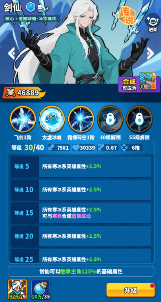升级:消耗对应的英雄碎片+对应英雄属性的魔药,即可升级。