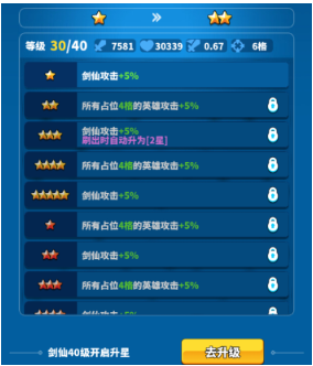 升星:消耗对应的英雄碎片+对应品阶的突破石,即可升星。