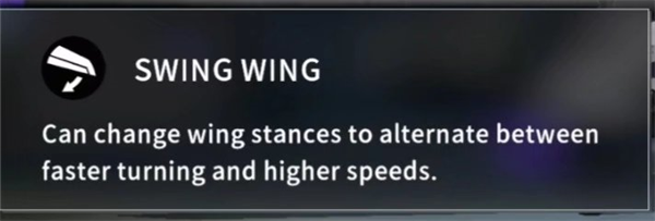 可在高机动性与高速度间切换,以此对应不同的状况,机翼展开为高机动,闭合为高速度