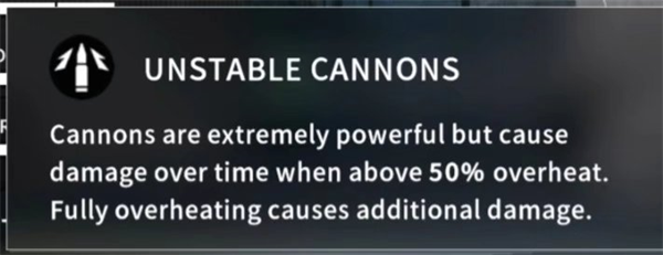 机炮伤害极高,但过热超过50%时继续使用会持续对自己造成少量伤害,100%过热时会造成大量伤害