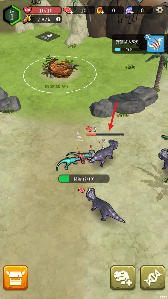 2、靠近猎物后,你的恐龙们就会发动攻击。
