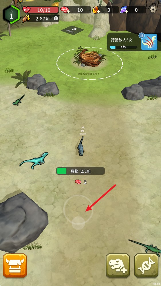 1. 在游戏里,只要拖动屏幕,虚拟摇杆便会出现,借此可控制恐龙移动。