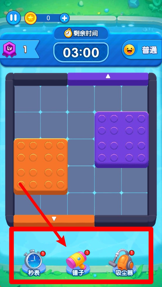 3.道具助攻:游戏中可以使用各种辅助道具帮助清除难缠方块,适时使用道具能改变局势,瞬间逆转战局赢取胜利。