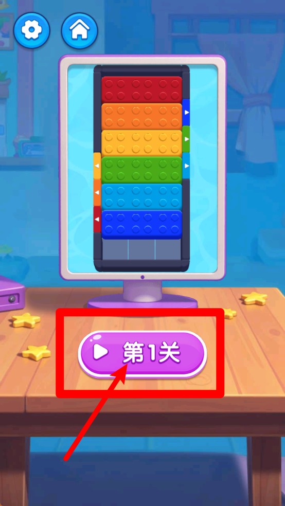 1.关卡选择:从主界面点击“第1关”按钮即可开始游戏,通过不同关卡挑战积累经验和奖励,享受逐步升级的益智乐趣。