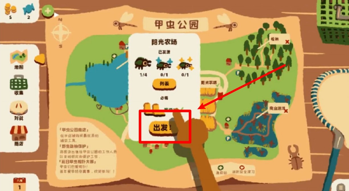 2.选择出发:在地图中挑选目的地,点击“出发”按钮即可前往目标区域,展开捕捉挑战,逐步解锁丰富的场景与任务。