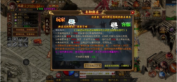 新区没玩明白,还氪金了,浪费了。没关系,我们游戏设有自助转区功能,老区充值金额可以全部转区至新区!