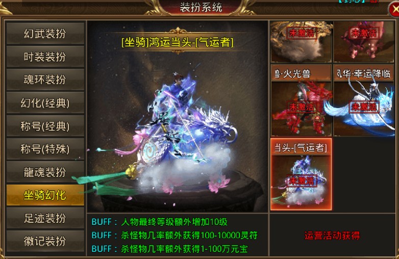 装扮系统涉及的种类样式丰富,包含幻武、时装、魂环、称号、坐骑、足迹等等,每个品类的款式多元化,总有一款深得你心。
