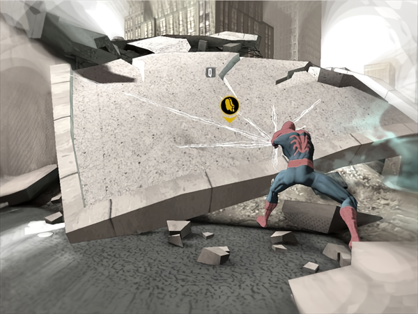给力的BOSS在速度上必然比蜘蛛侠只快不慢。如果选择困难模式,那是快得一塌糊涂。招式方面有些像波斯王子2,不过比前者要丰富。跳跃/抓取/轻击/重击,这个按键组合出来不同的招式。比如按住重击把敌人挑起来,之后三下轻击,直接打飞。操作难度介于波斯王子2和鬼泣4之间,毕竟这部游戏的亮点不在招式上。
