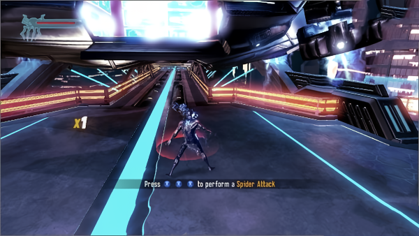5、这里要控制未来的蜘蛛侠,没听错的话应该是2099年,这里是攻击训练,根据按键提示干掉敌人就可以了。