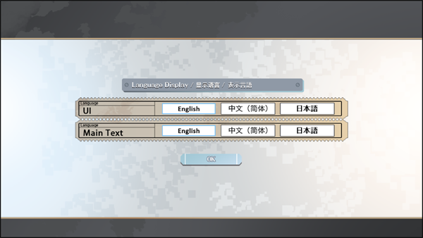 1、打开游戏,第一步,我们需要对显示语言、表示言语进行修改操作,支持简体中文,算是比较良心了。