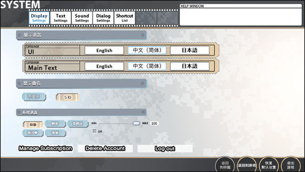 3、在这里,我们可以根据自己的喜好对显示、文本、声音等方面进行修改操作,目的是为了提升沉浸式游戏体验。