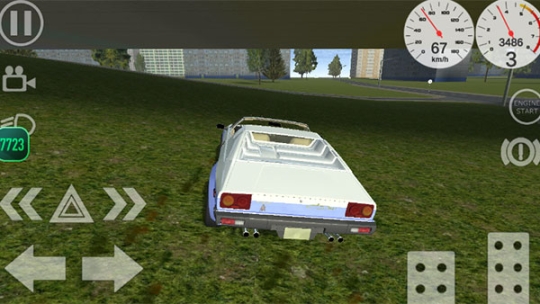 3、进入到驾驶场景当中了,包括录像、大灯、转向灯、启动等按键,我们可以通过左下角的左右控制车辆移动的方向,通过右下角【刹车】后退和【油门】前进按钮来控制车辆的速度,