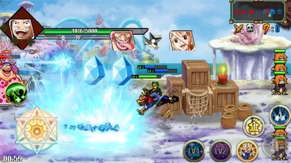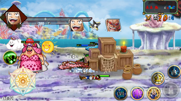 1、有多个海贼王角色可以让玩家去选择来游玩,丰富的阵容组合会让你体验到不同的对战乐趣。