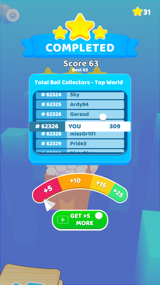 5、到达终点后,根据最终的小球数决定获得的星星。