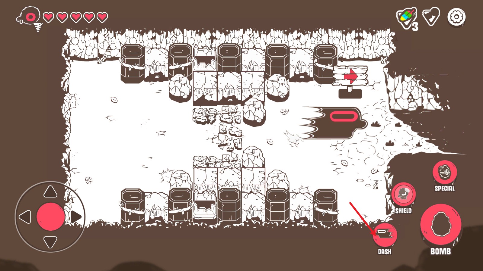 4、我们来到合适的位置点击右侧的按钮就能够放置炸弹。