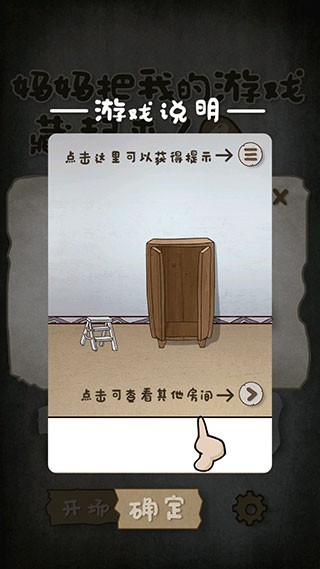 3、点击右上角可以获得提示,点击左/右下角可查看其他房间。