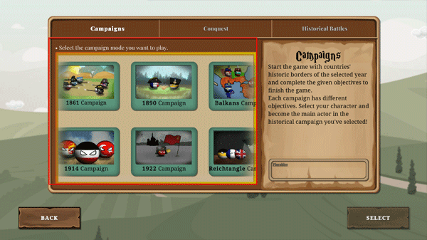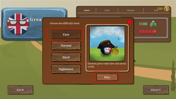 10、在“info”板块,你能够查看一般信息以及本国的统计数据等内容。在“Countries”板块,你可以了解其他国家的统计情况并处理外交事务。“Objectives”板块中,你能看到各项目标,当你完成所有这些任务,就能赢得游戏。“Army”板块里,你可以查看自己的军队,还能从军营招募士兵。在“Diplomacy”板块,你能看到外交选项,可进行宣战、发送盟友请求或移除盟友等操作。需注意,上述每一项操作都算作一个动作。当你持续攻击某个国家,该国可能会因筋疲力尽而请求成为傀儡国家。若你接受此请求,该国所有驻军都可供你调配使用。最后,在部分领土及不同的战役地图中,隐藏着秘密的乡村球,尝试找到它们来揭开秘密!