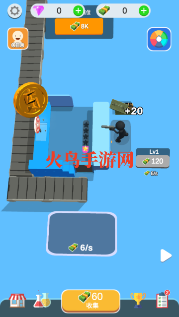 1、融合3D橡皮人画风与射击场经营,创新模拟经营体验,乐趣与策略并存