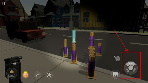 10、摆放好后,我们点击滑动屏幕对准烟花,然后点击旁边的打火机就可以引燃引线,点击一次即可,其余烟花会一起被点燃。