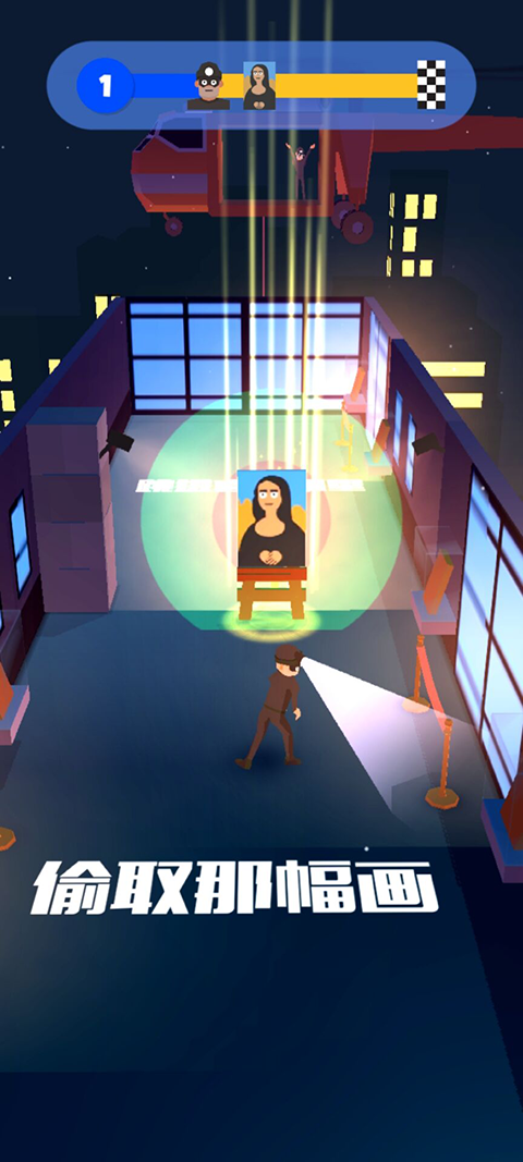 2、游戏内,我们需要小心安保人员的探查,拿到画后安保会瞬间察觉,这是需要尽快与外部交接的直升机会和。