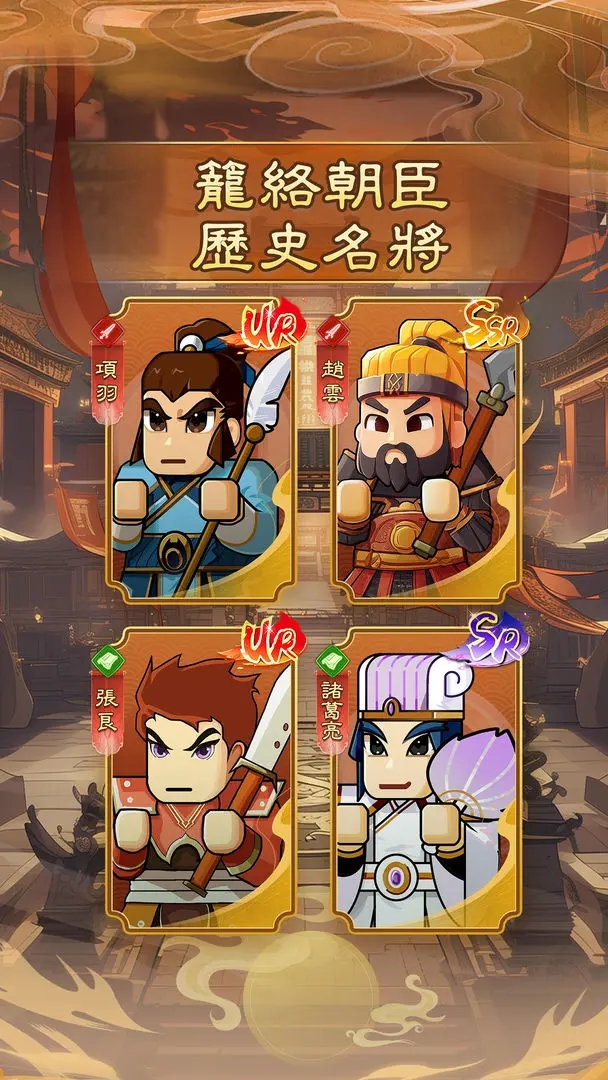 2、名臣武将齐聚:各朝代历史名将、文臣谋士悉数登场,合理搭配阵容,打造最强统治班底,助力王朝扩张。
