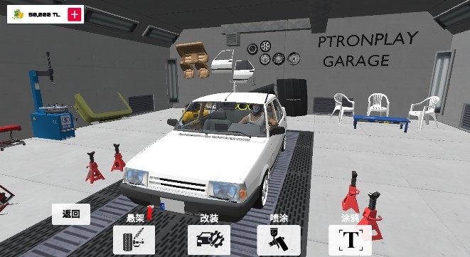 点击改装,进入赛车改装界面,包含悬架,涂鸦,喷漆,改装等四大模块。