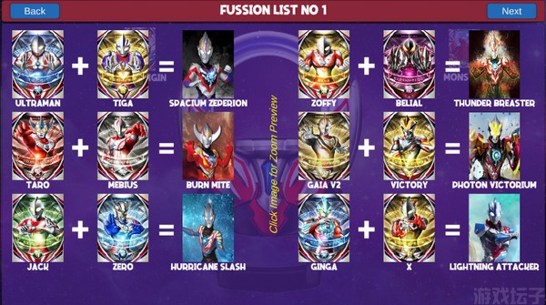 4、点击右边的奥特融合卡牌区,挑一张你喜欢的奥特曼卡牌,开启融合之旅吧!