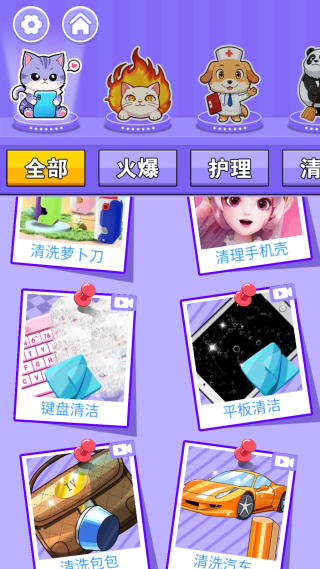 1. 场景丰富多元,包含个人护理、宠物清洁、物品保养等领域,每个场景都配备专属的清洁工具,并对应特定的污渍类型,带来多样化体验。
