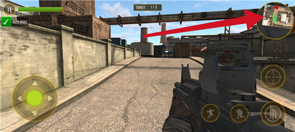 2、进入游戏后,我们可以看到左侧的摇杆是控制玩家前进后退的,右侧则是跳跃、下蹲、射击和瞄准;