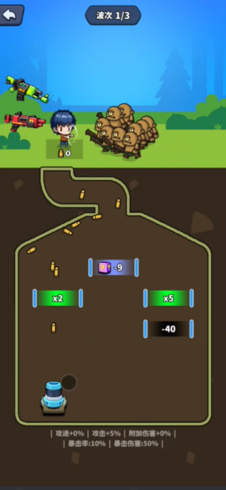 2、第一波防守,迎击首波简单敌人,适应射击节奏,同时收集击败敌人掉落的金币和弹药,熟悉不同敌人的移动模式和弱点。