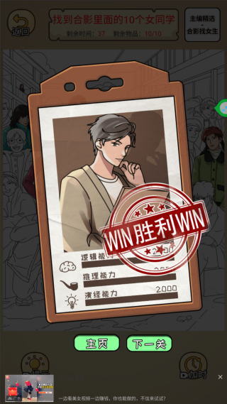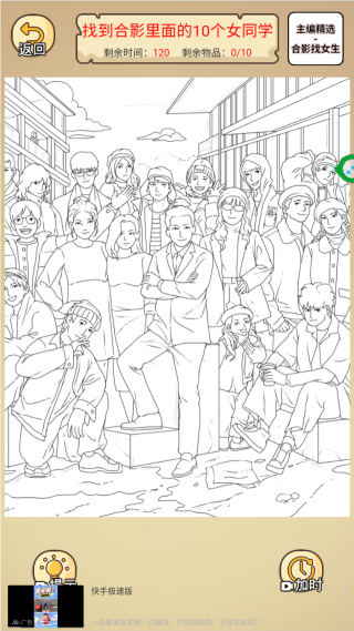 3、按照要求完成挑战,每关都有时间限制,比如你需要在120s内找出合照里面的十个女生。