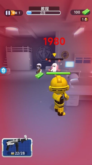 1、操控你的角色进入战场当中,点击屏幕射击敌人,开启防御大乱斗。