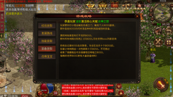 3、加入活跃行会,参与集体活动如沙城战、BOSS围剿,不仅能分到更多奖励,还能获得行会技能加成。