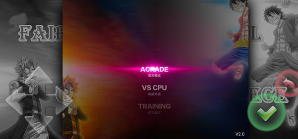 1、先把《妖尾vs海贼王》下载并安装完成,接着点击绿色的勾,即可开启游戏。