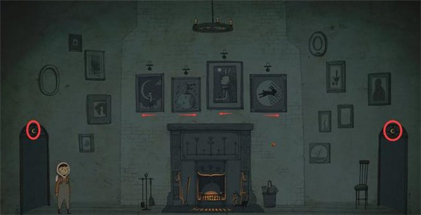 这一关的信息稍微有些隐晦,关键信息藏在中间墙壁的4副图中,首先看两侧门月亮的状态,之后根据图中月亮状态+兔子手指向选择前往哪扇门,四幅图上的蜡烛全部点亮即可通关。