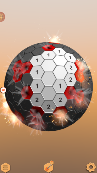 4、当所有安全区块都成功被揭开,星球便会发光以示庆祝;要是不小心失误触雷,就会触发壮观的“星球爆炸”动画。