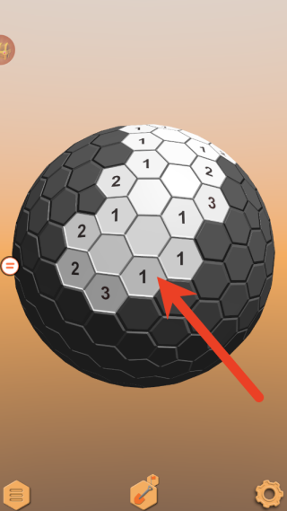 2、用手指旋转3D星球,查看每个区块上的数字(代表相邻区块的地雷数量),长按放大局部区域。
