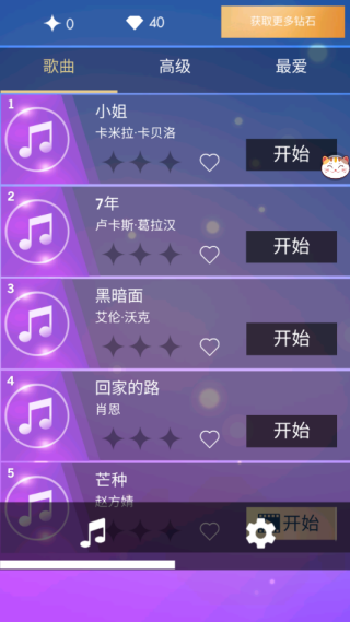 2、浏览曲库,从流行、古典等数百首音乐中选择你喜欢的歌曲开始挑战。