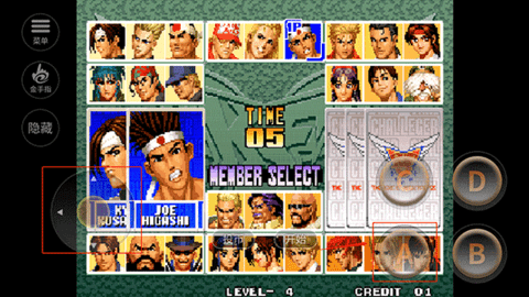 6、在游戏中玩家们需要一次操控三个角色进行格斗,哪方最先将对方的三个英雄击败哪方获得胜利。格斗开始后使用右边ABCD各招式按键与对手进行攻击